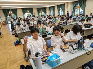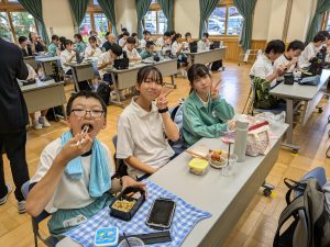 こんにちは、東可児ジローです。班別研修を終え、現在昼食中です。みんな元気です。