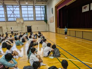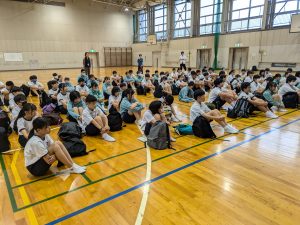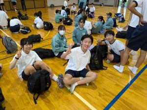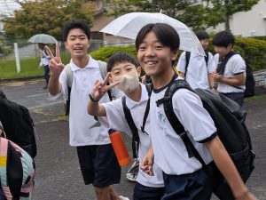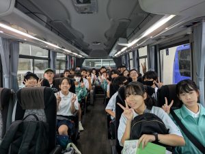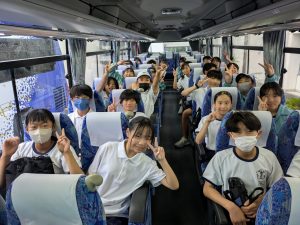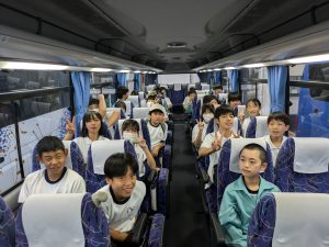 おはようございます、東可児ジローです。今日は1年生が楽しみにしてきた高山研修です。みんな元気です。
