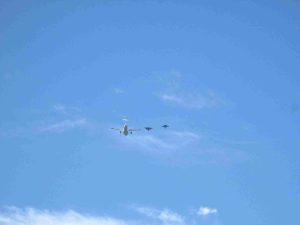 土日は雨、月曜日は秋晴れというサイクルが続いているように感じます。空を眺めると、気持ちよさそうに自衛隊機が飛んでいました。
