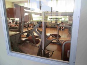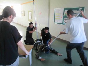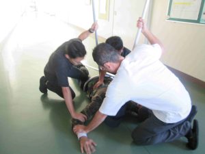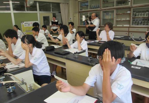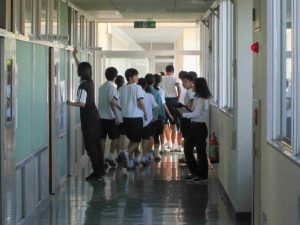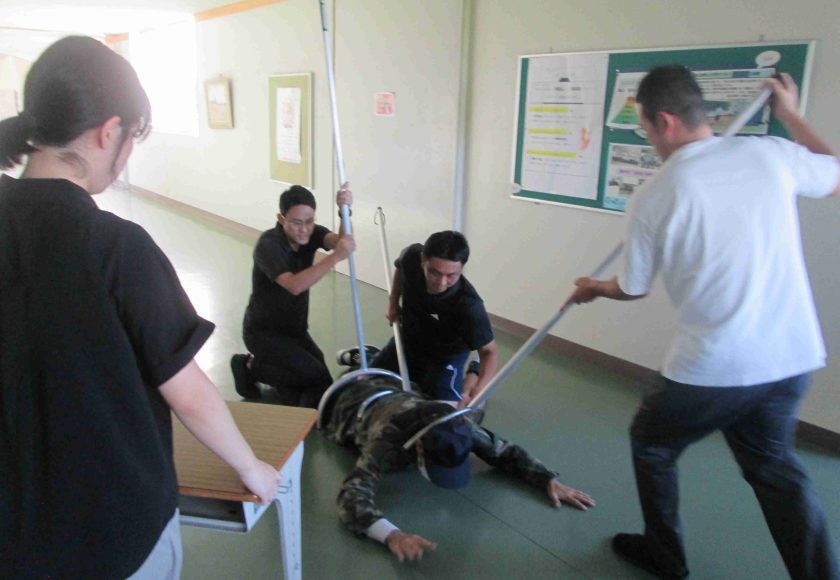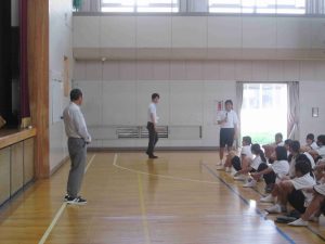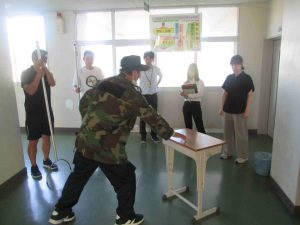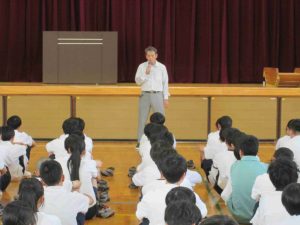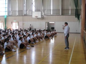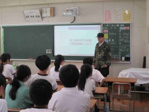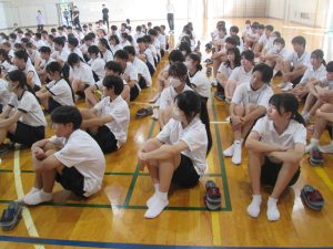 今日の6時間目に「命を守る訓練」の一環として、「不審者対応訓練」を行いました。可児警察署の署員をお招きして、実戦さながらの訓練でした。不審者が学校に潜入した場合は、まずは生徒の安全が第一。先生方は生徒を守るために不審者に対応します。また、生徒はどのように行動すればよいのかを学習しました。こんなことは起きてほしくないですが、訓練をしておくことは大切です。質問コーナーで、「複数人いた場合はどうするのですか?」「不審者が一人でいるところに来たらどうすればよいのですか?」「不審者につかまれたらどうすればよいですか?」と積極的に質問し、そしてその対処方法も学びました。みんな真剣な姿が印象的でした。