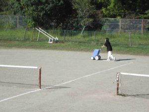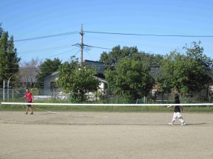 ふと、テニスコートを見ると、先生たちが放課後の部活動の準備をしていました。テニスコートも整備されました。