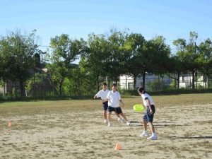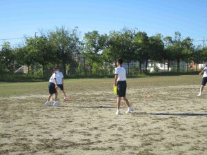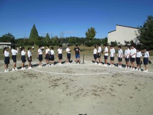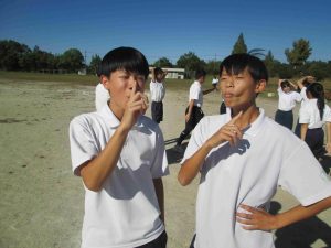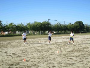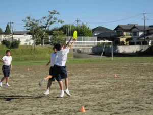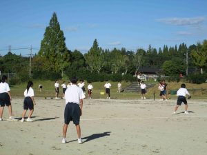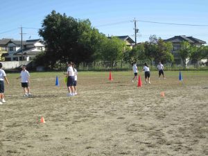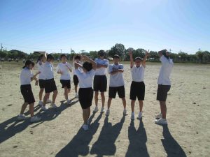 さて、青空の元、6時間目には1,2年生の体育の授業がおこなわれていました。少し日差しが強かったですが、時折吹く風が気持ちよかったです。みんな元気よく運動を楽しんでいました。