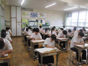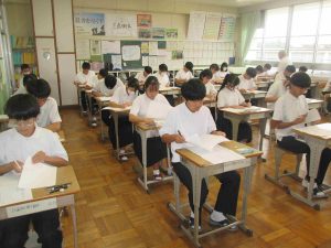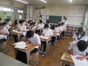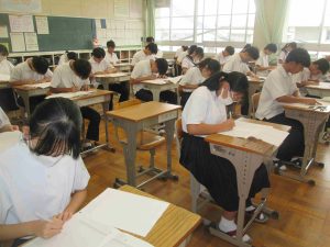 3年生は、第4回目の実力テストでした。先日第3回目の結果が返ってきたばかりなのに、また実力テストです。やはり受験生は大変です。今日は、テストとテストの合間も写真を撮りました。最後の追い込みとばかりに参考書を見ている生徒など、様々でした。お邪魔でしたが、快く笑顔で対応していただきました。