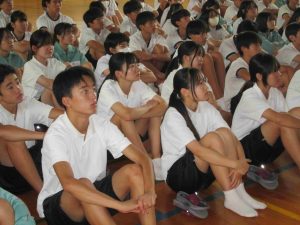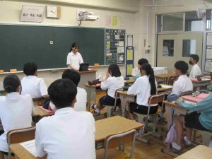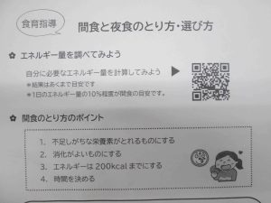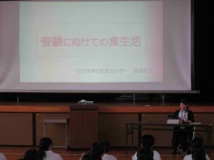 今日の5,6時間目に、「食」について学習しました。給食センターの栄養教諭の先生にきていただき、色々と説明を聞きました。2年生は「間食・夜食の取り方」3年生は「受験にむけての食生活」というテーマのお話でした。一日にどれだけのエネルギーを摂取すればよいのか、朝食と成績の関係など、改めて食というのは大事なことだと認識しました。