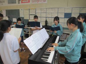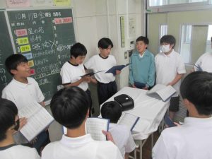 1年生は、各クラスで合唱の練習を行っていました。今年の1年生は歌が上手いと感じました。パートごとの練習でしたが、各パートで合わせると素敵な合唱になるのではないかと楽しみです。何といっても歌っている表情が良いです。