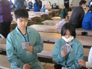 今日は、特別支援教室の生徒の校外学習でした。「チャレンジ研修」といい、市内の中学校5校の生徒が集まります。場所は、「岐阜ワールド・ローズガーデン」です。園内に入ると、バラの香りがするとても奇麗なところです。午前中はオリエンテーリングを行い、そして午後はトランプゲームなどをして楽しみました。他校の生徒との交流もできたことでしょう。天気もよく、秋空のもと楽しい一日を過ごしました。