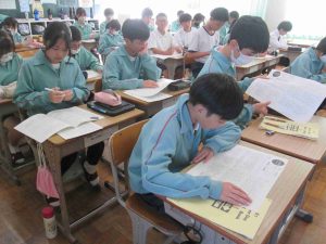 明日から2年生は職場体験です。6時間目に最終確認をしました。明日から2日間、頑張ってください。