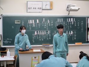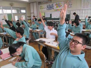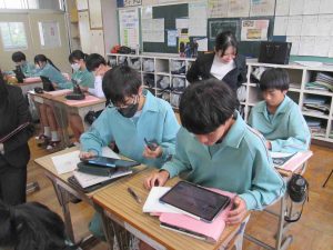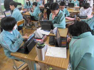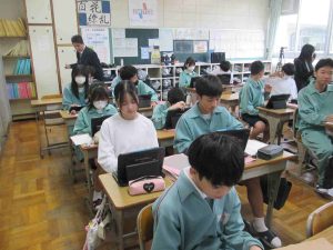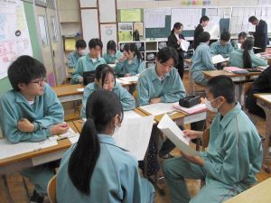 今日は、国語科と音楽科の先生のブラッシュアップ研修として、授業公開しました。音楽の授業では仲間とともに曲作りをしていました。国語の授業では、文章の構成や読み取りを頑張っていました。いつもと変わらず頑張っていますが、先生は少し緊張気味でした。より良い授業を目指しています。