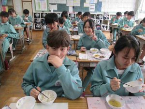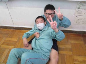 給食から昼休みにかけての生徒の様子です。今日は「ポッキーの日」ということもあり、「1」を意識した生徒もいました。