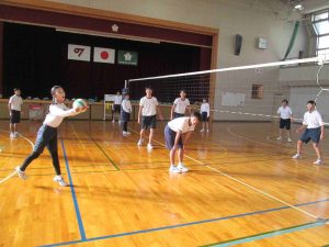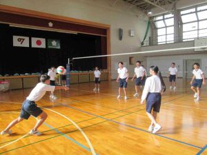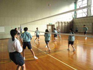3年生の体育のバレーボールの授業です。3年生ともなるとラリーが続き、なかなか熱戦です。苦手な生徒もお互いに励ましの声をかけあいながら、積極的にボールを追いかけていた姿がよかったです。
