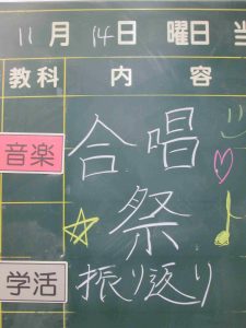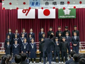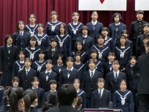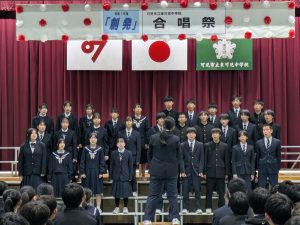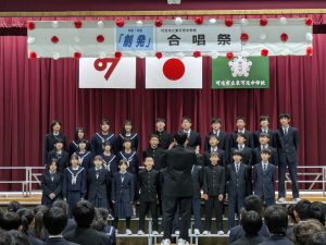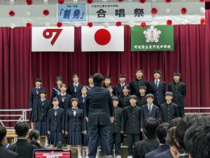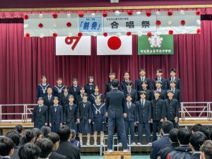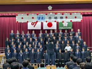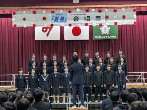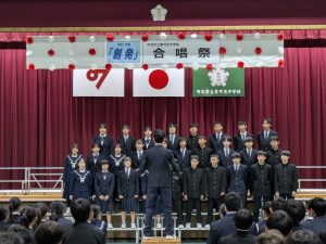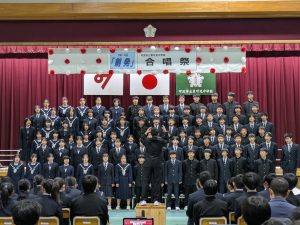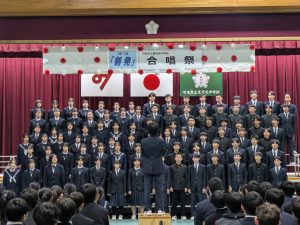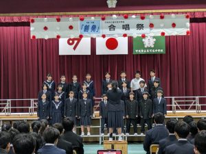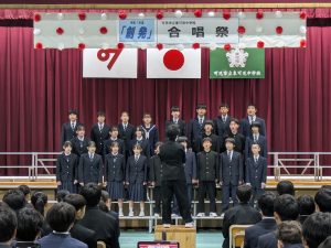 今日は合唱祭当日です。天気は快晴!生徒も朝から張り切っていました。多くの保護者さんも来校し、合唱祭が開催されました。