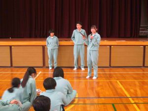 さて、MSJリーダーズの活動に向けて、今日の昼休みに体育館で打ち合わせをしました。リーダーとなる3人の生徒がその内容を説明しました。多くの生徒が自主的に参加し、来週から活動をスタートします。