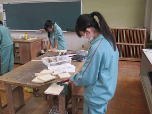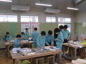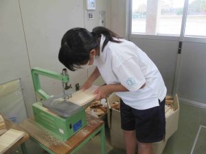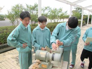 学校生活の様子です。3年生の数学の時間は図形の学習です。今は、タブレット上で角度を測ることができ、分度器を持ってくる必要はないのですね。1年生の技術の時間では、木工でした。上手に工具をつかって加工できたでしょうか?