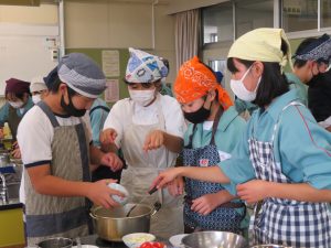 今日は、1-2が調理実習でした。あざやかな包丁さばきを披露する子もいれば、