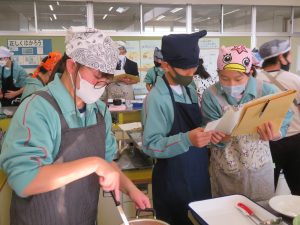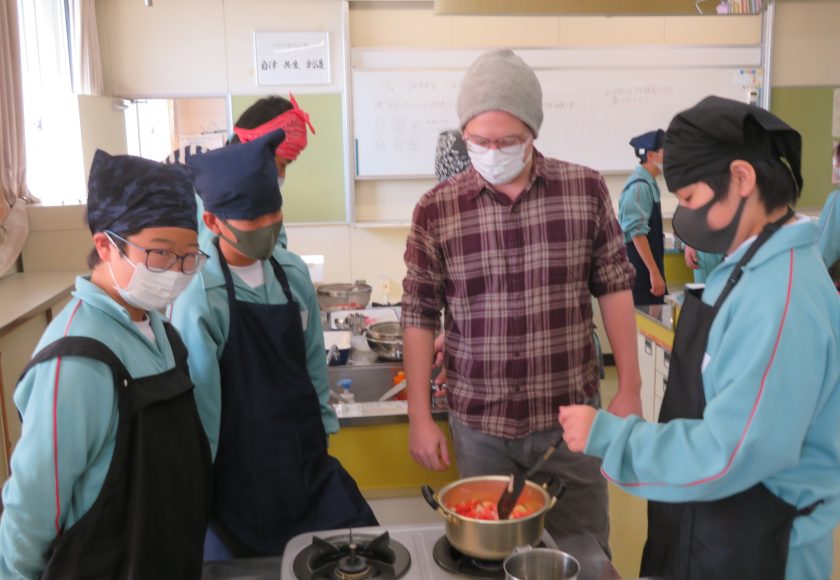 実習が進むにつれ、南舎にはよい匂いが広がり、思わずALTの先生も三角巾を身に