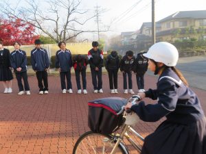 東可児中の校門付近だけでなく、桜ヶ丘小学校の近くでも、挨拶運動が行われました。