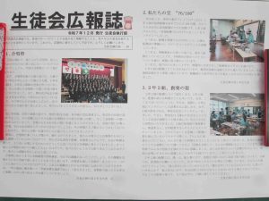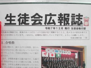 理科室に大きな天体望遠鏡があります。なかなか見かけない大きさでした。昨日、生徒会広報誌が発行されました。生徒のよさを広める活動の一環です。