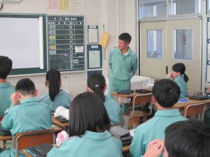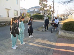 12月も半ばとなり、朝の登校時は寒いです。そんな中、クラスでの挨拶運動を行っていました。朝から、「おはようございます!」という爽やかな声がとても気持ち良いです。