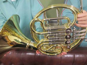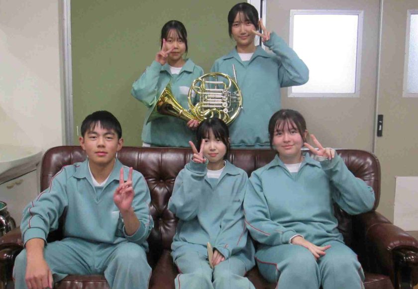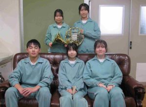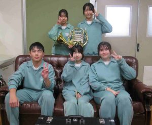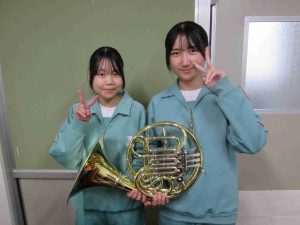 さて、サンタさんから素敵なプレゼントが届きました。サンタさんは「長江興産株式会社」で、プレゼントは「ホルン」でした。さっそく吹奏楽部の生徒に渡しました。「ピカピカ!」「やわらかい音色だ」とサンタさんからのプレゼントに大喜びでした。「もったいなくて飾っておきたい」と言っていましたが、これから一杯練習してください。長江興産株式会社の皆様、本当にありがとうございました。