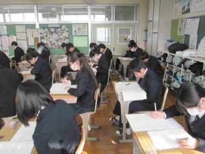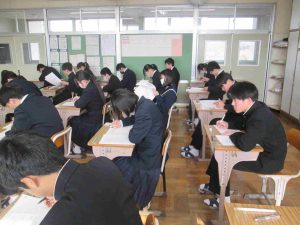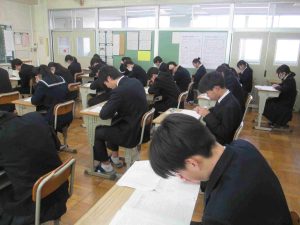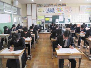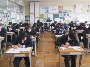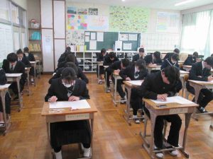 今日は3年生が中学校生活最後の定期テストでした。教室に入ると、緊張感を感じることができました。私立高等学校などの入試も始まり、今日の実力テストも、さながら入試本番のような雰囲気でした。自分の力は発揮できたでしょうか?