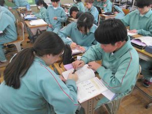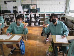 生徒の様子です。今日はALTさんがお見えになり、英語の授業をされました。何か、お正月に伊達巻をつくったそうです。何と、卵にハニー(ハチミツ)を入れてつくったそうです。初詣もいかれ、おみくじは「吉」だったそうです。