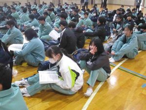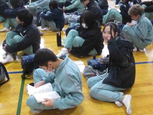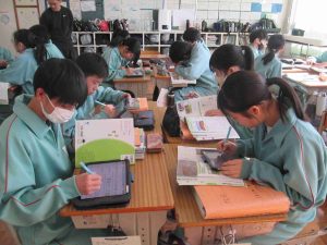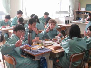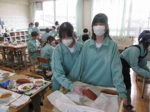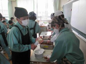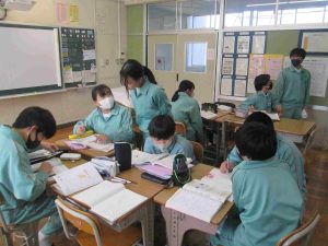 寒い日が続きます。休み明けで発熱で欠席する生徒もいました。健康には十分気を付けてください。さて、今週は「給食週間」です。今日も美味しくいただきました。