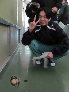 さて、3年生の理科の時間は、惑星について学習しています。今日は太陽系を歩きました。太陽から、冥王星までの縮尺を理科室前にあり、太陽から歩いてみました。歩くスピードは光の速さの1000倍だそうです。実際に歩いてみると、天王星、海王星といった惑星は地球からはるかかなたにあることが良く分かりました。