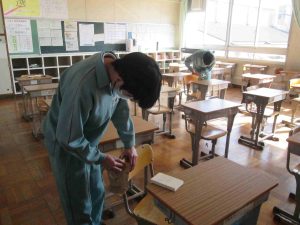 午後からは3年生のみの学校でした。3年生は「巣立ち活動」を行いました。卒業間近の3年生は、3年間使った学校への感謝の気持ちを込めて、自分たちでどこをきれいにしようかと計画しました。こんな素敵な心をもった3年生の皆さんに本当に感謝ですね。ありがとうございました。