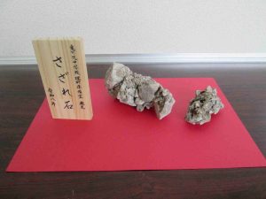 理科室前の理科コーナーに、「さざれ石」が展示されていました。国歌の歌詞にも出てくる「さざれ石」を実際にみることができます。