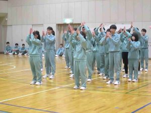 今日は待ちに待った「3年生と語る会」です。まずは第一部として全体会が行われました。最後に3年生によるリズムアンサンブルが発表されました。卒業間近の晴れ晴れとした表情がとても素敵でした。