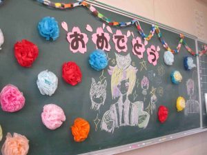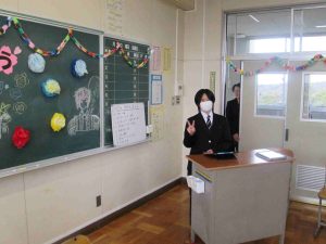 1,2年生は、残り16日です。帰りの会で1,2年生合同で合唱練習、そして、6,7組ではお別れの会を行っていました。