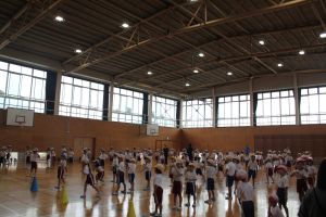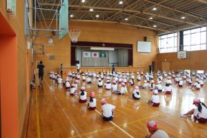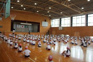 1年生全員で、運動会の練習を行いました。体育館で行いました。教室での練習の成果もあり、ずいぶん動きがよかったです。当日が楽しみです。