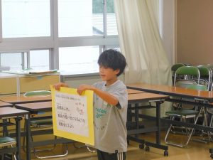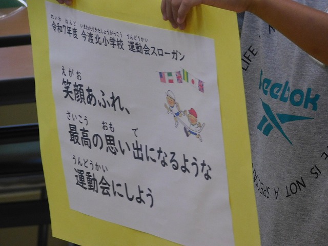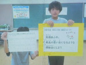 前半は代表委員から、運動会スローガンと日常の取り組みの発表。