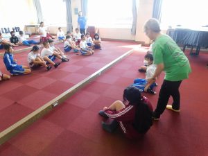 対象学年は4年生。この企画は大人気!!子どもたちも見守る先生も、指導いただく講師の方々も笑顔です。(素晴らしい企画です。市教委・アーラの皆様、毎年ありがとうございます。)