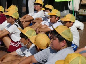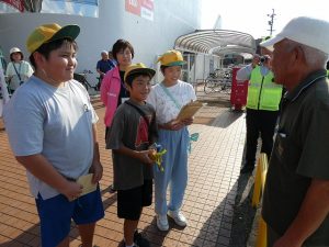閉会式です。この活動の中心となって43年間続けてくださっている、交通ママさんからのお話を聴きました。