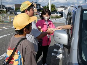交通量の多い校区です。子どもの登下校指導だけでなく、ドライバーにも交通安全を心がけることを考え、はじめられたそうです。