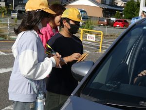 準備してきた100枚のお手紙としおりは、予定どうり地域の方、ドライバーさんに私ことができました。