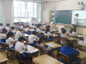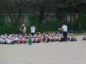 From the principal’s office, you can hear the energetic voices of the Grade 6 students from the schoolyard: “Dokkoi-sho! Dokkoi-sho!”
