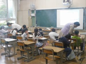 校長室には、運動場からは「どっこいしよー、どっこいしょ!」と6年生の元気な声が聞こえています。