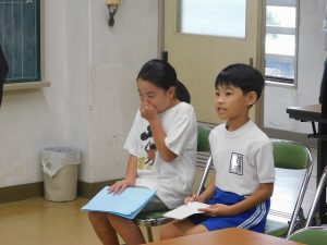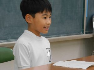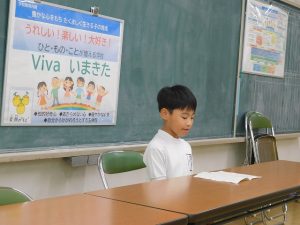 前期で味わった「うれしい、楽しい、大好き」な気持ちになった具体的な場面から学んだこと、そして、後期に取り組みたいことを堂々と語りました。