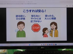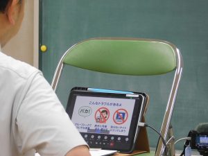 続いて、生徒指導主事の話。今日は「情報モラル」についてでした。