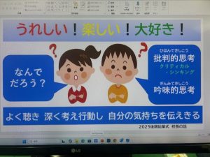 「なぜ、この始業式という場で、この話をしたのかな?」と、その背景を考えることができたら素晴らしいです。