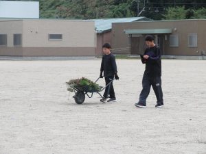 この日は、スポ少のバスケット・サッカーチームも活動してくださいました。この時期のスポ少環境整備ボランティア(先週は野球チームも)は、毎年恒例行事とのこと。私は過去5年、本校に勤務していましたが知りませんでした。「ありがとうございます。」