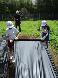 鍬を持って土を高くし、マルチをはるところまでやってくれていました。