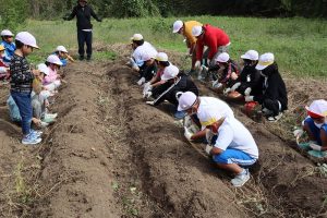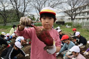 そんな6年生の児童たちの活躍もあり、かがやき学級みんなでさつまいもの苗を植えました。