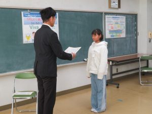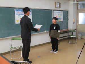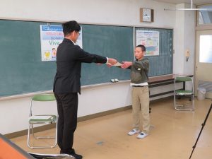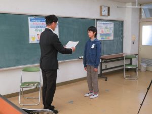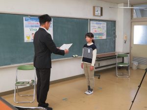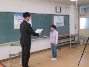 司会の先生から名前を呼ばれると、「はい!」とさわやかな挨拶。一人一人に認証書を渡しました。