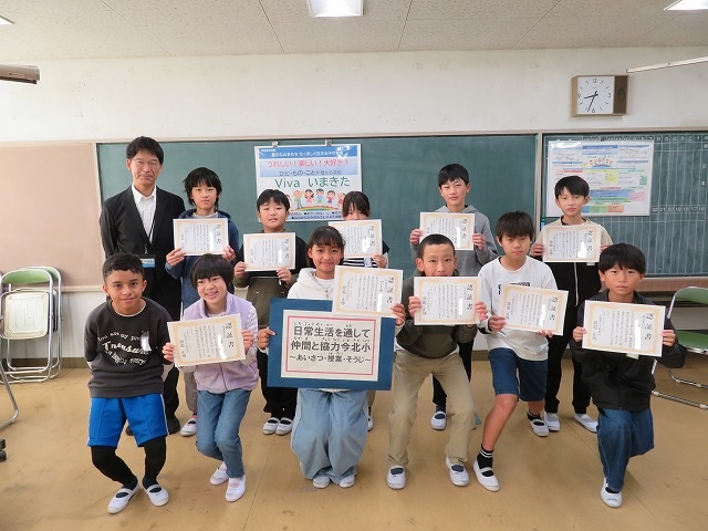 声の中身は、仲間を、そして自分自身にも「認め・励まし・勇気づける」言葉がよいこと。相手を悲しませる=いじめにつながる声は出さない。いじめはゆるさないことを全校児童と職員で確認しました。