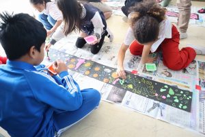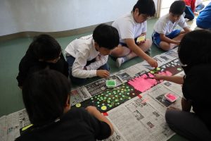 10月29日(水)の午前中、可児市で活動されているごちゃまぜアートの会の方々が来校され、一緒に作品づくりをしました。