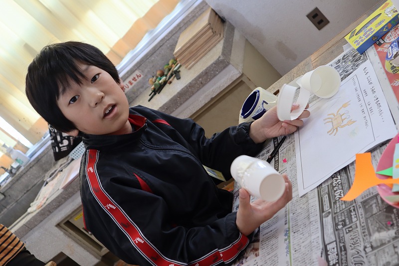 事前に海の生き物を調べて、何を作るのかイメージして作品づくりに臨みました。