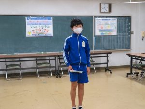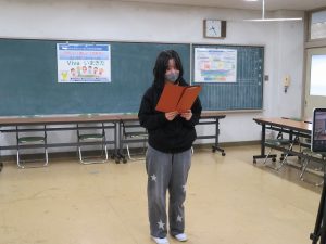 「これから児童朝会を始めます。ボランティア委員さん、お願いします。」